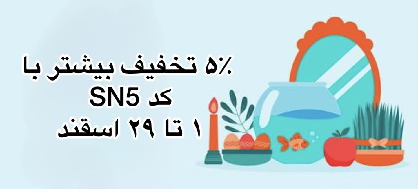 ,ارسال رایگان پستی برای خریدهای بالای ۲ ملیون و ۵۰۰ هزار تومان. (((((. ۱ تا ۲۹ اسفند با کد تخفیفی SN5 در ثبت سفارش ها 5% تخفیف بیشتر دریافت کنید
