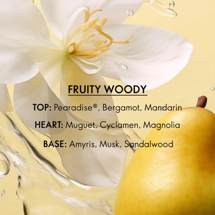 انرژی لذت بخش کاوش و هیجان را با طراوت گلابی آبدار در هم تنیده با مگنولیا و چوب صندل مشک دار در آغوش بگیرید.