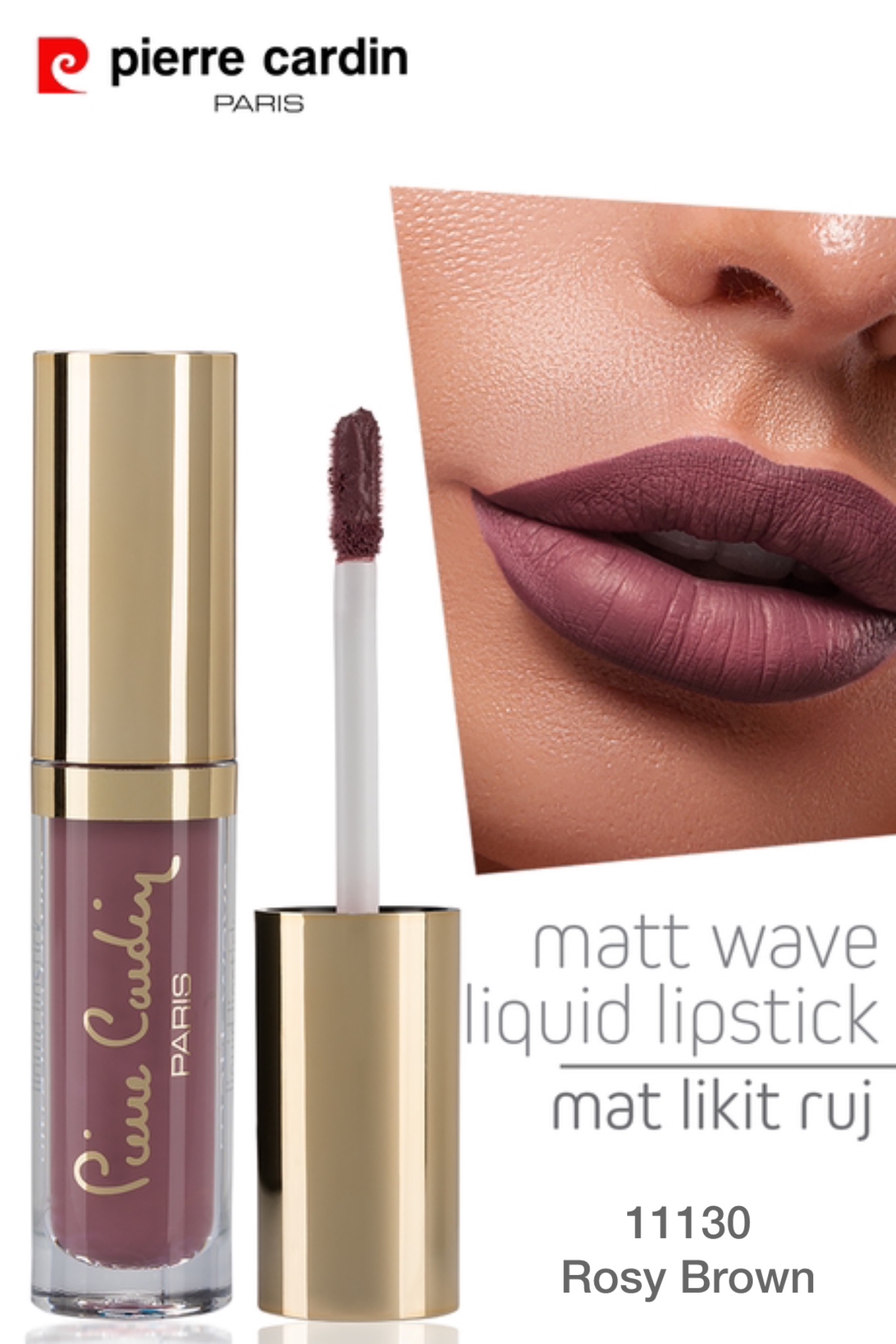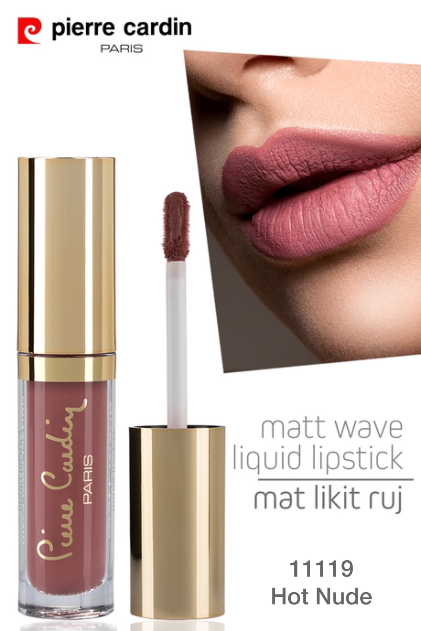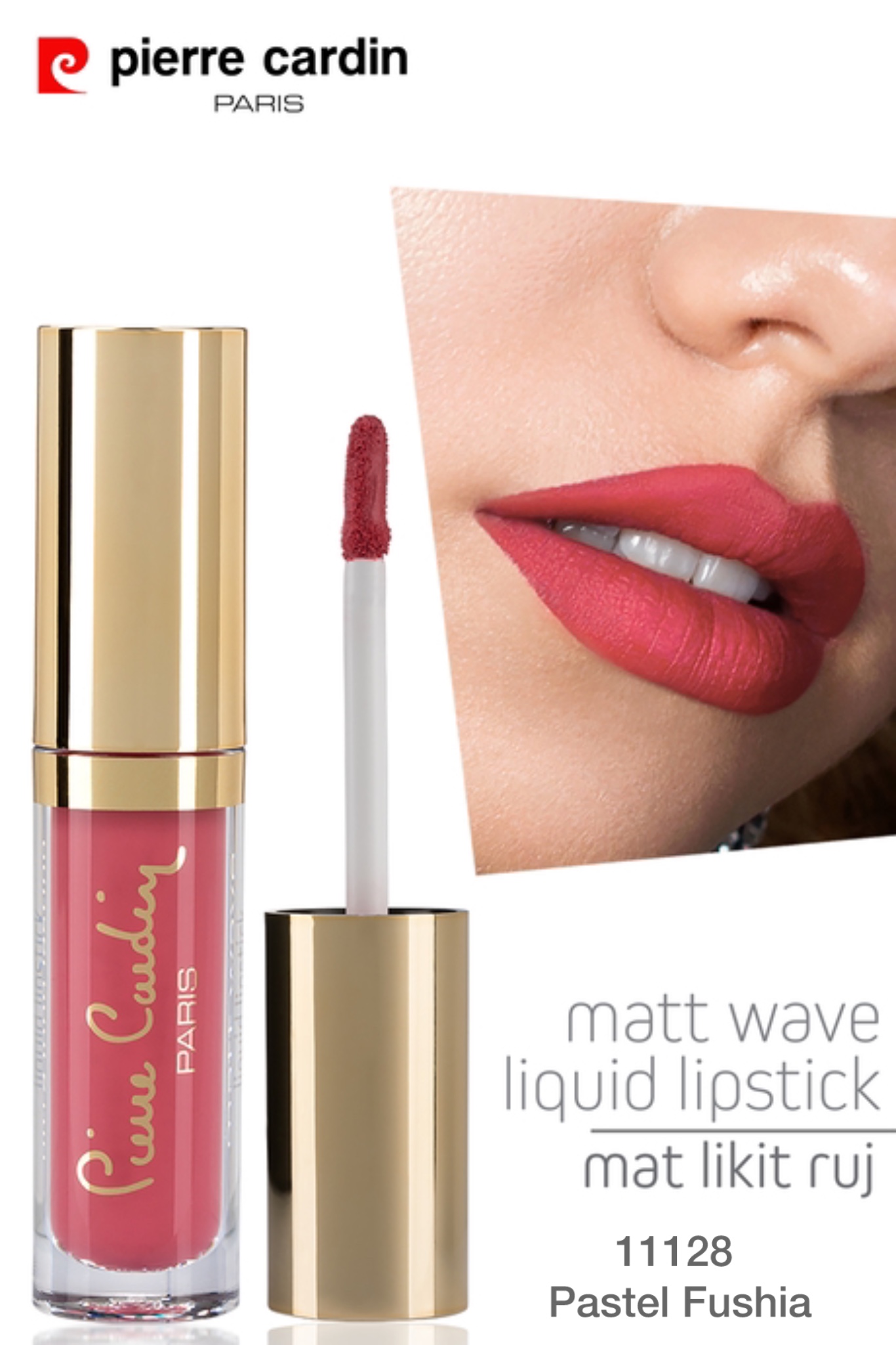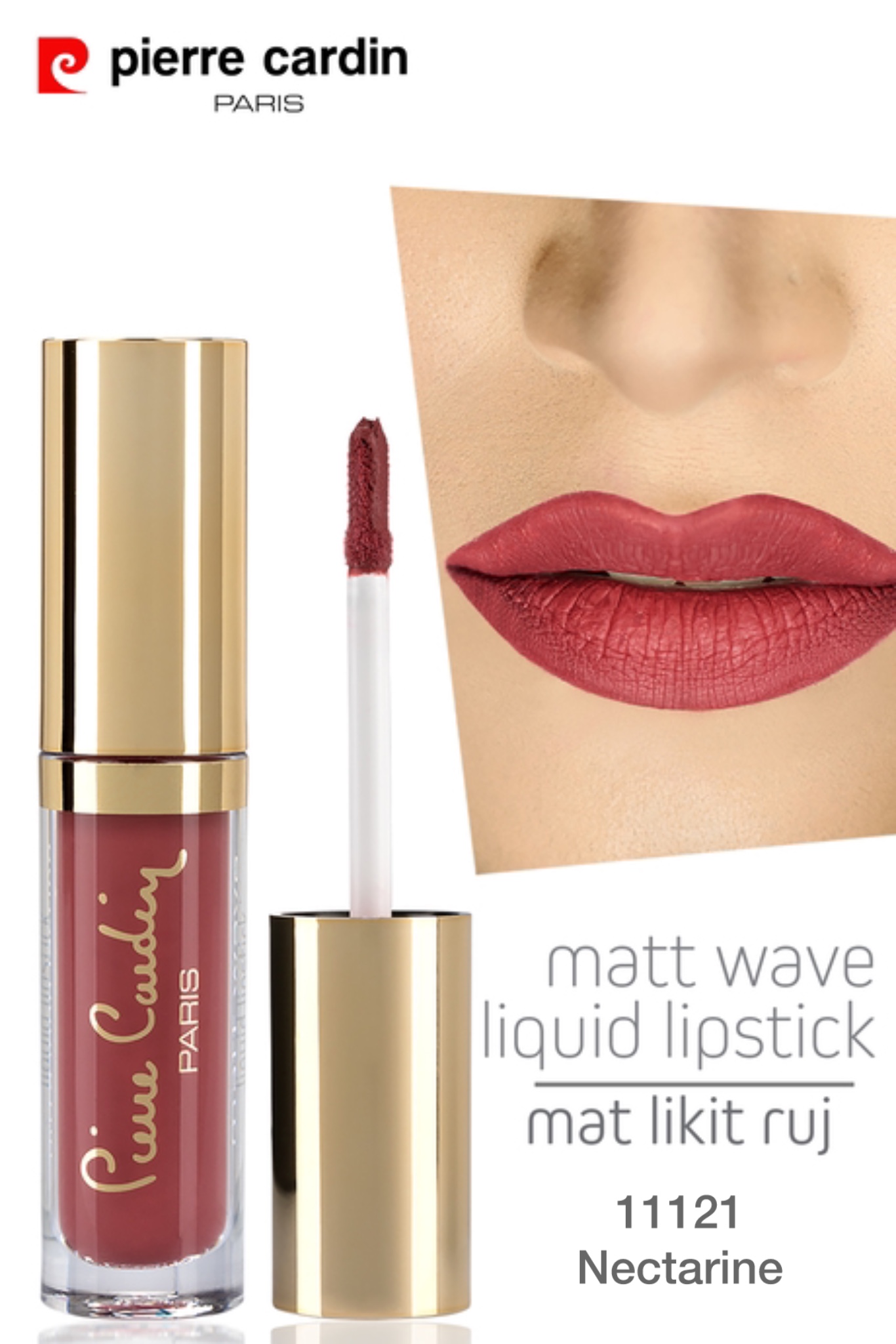 رژ لب مایع Pierre Cardin Matte که رنگی تند می بخشد، مات و ماندگار است.