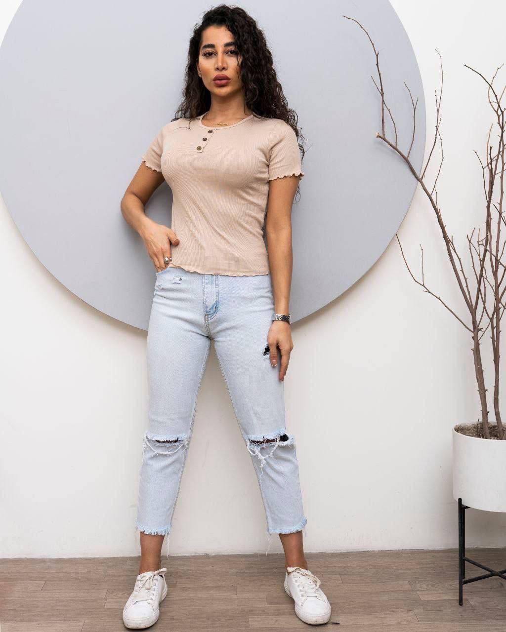 تیشرت زنانه ۳ دکمه ژور فری سایز (36_44)